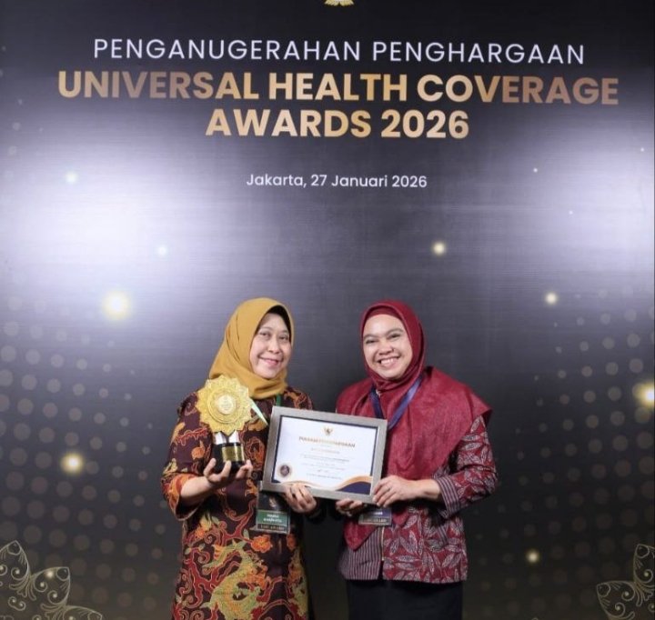 Atas capaian tersebut, Surabaya menerima penghargaan Universal Health Coverage (UHC) Awards 2026 kategori Madya dari BPJS Kesehatan.