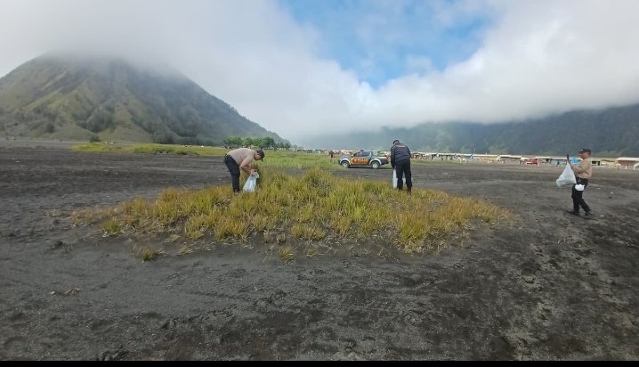 Demi Wisata Berkelanjutan, Aparat dan Komunitas Bersihkan Kawasan Bromo