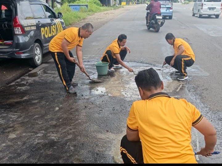 “Ada beberapa ruas jalan berlubang yang berpotensi membahayakan pengguna jalan. Untuk itu kami lakukan penanganan sementara agar lebih aman dilalui,” ujar AKP Novi.