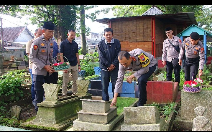 Secara bersamaan, Pejabat Utama (PJU) dan lima Kapolsek jajaran Polresta Malang Kota juga melakukan ziarah di TPU lain.