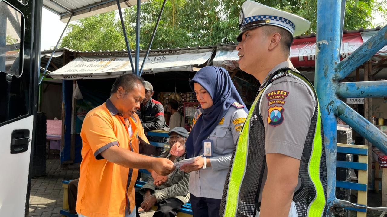 Kegiatan tersebut turut dihadiri oleh Ps. Kanit Kamsel Satlantas Polres Pasuruan Aipda Arifian Miftakhul Firdaus, S.H., bersama tim Kamsel Satlantas,